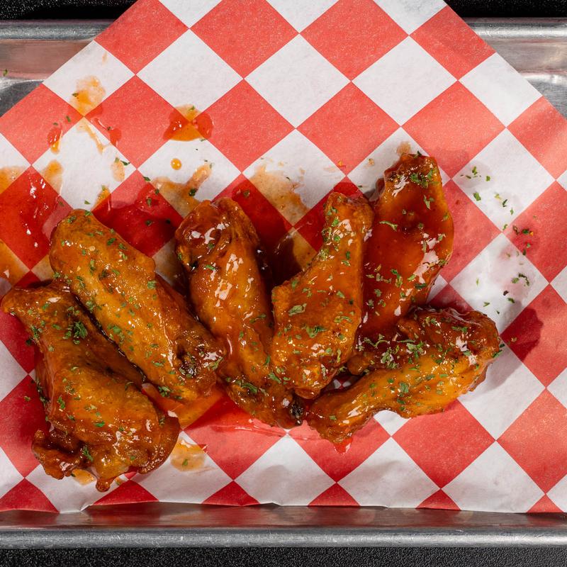6 Fried Wings, Buffalo, Garlic Parmesan, Lemon Pepper, Hot Honey, Teriyaki