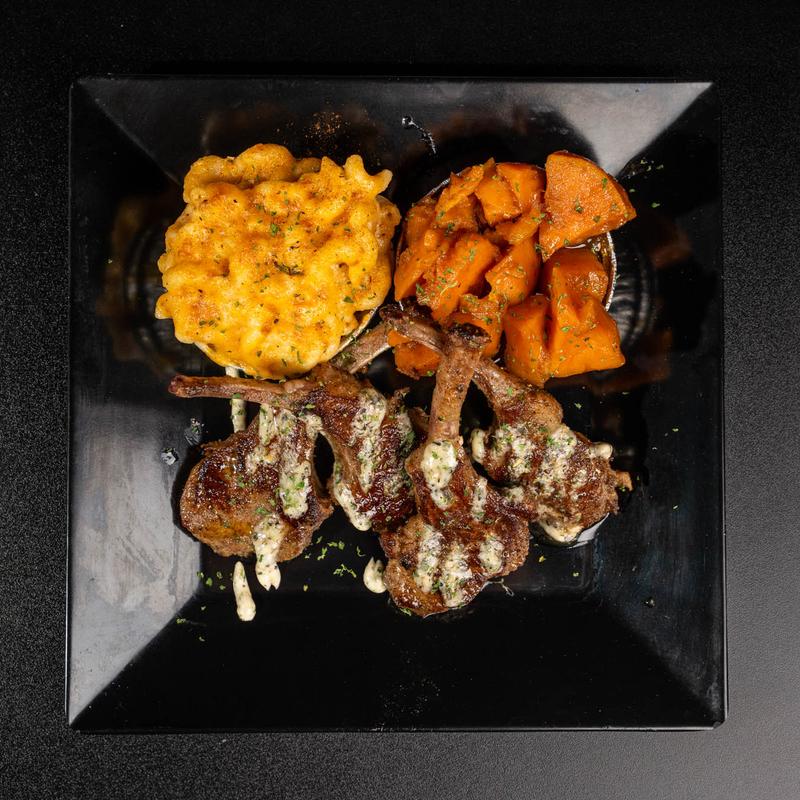 3 grilled lamb chops with your choice of 2 sides and a crescent