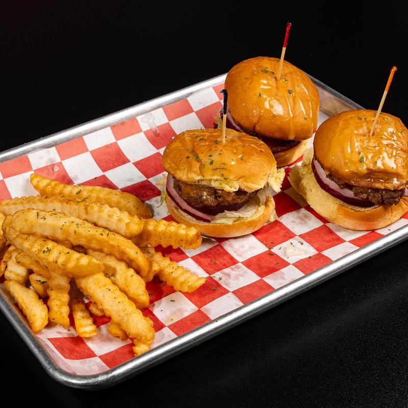 (2) cheeseburger sliders with lettuce, tomatoes, pickles & onions | Fries included
