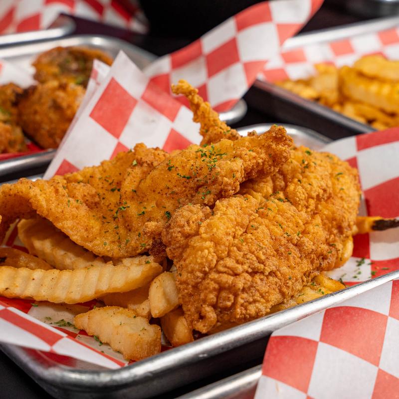 2 fried or blackened catfish filets with lettuce, tomatoes, and red onions topped with our signature spicy aioli sauce