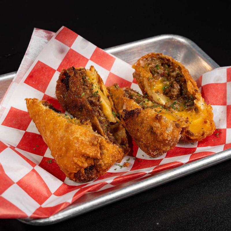 2 eggrolls filled with Philly meat, provolone cheese, onions, and peppers